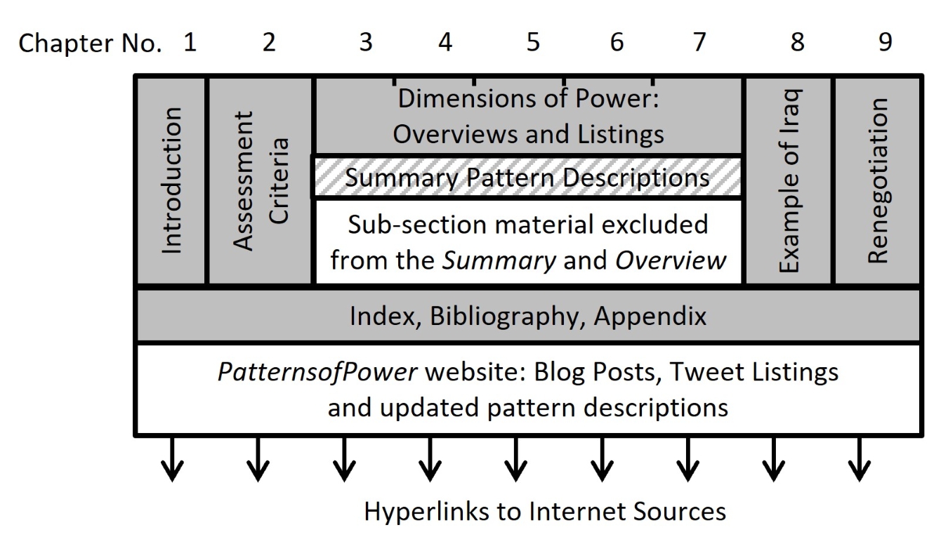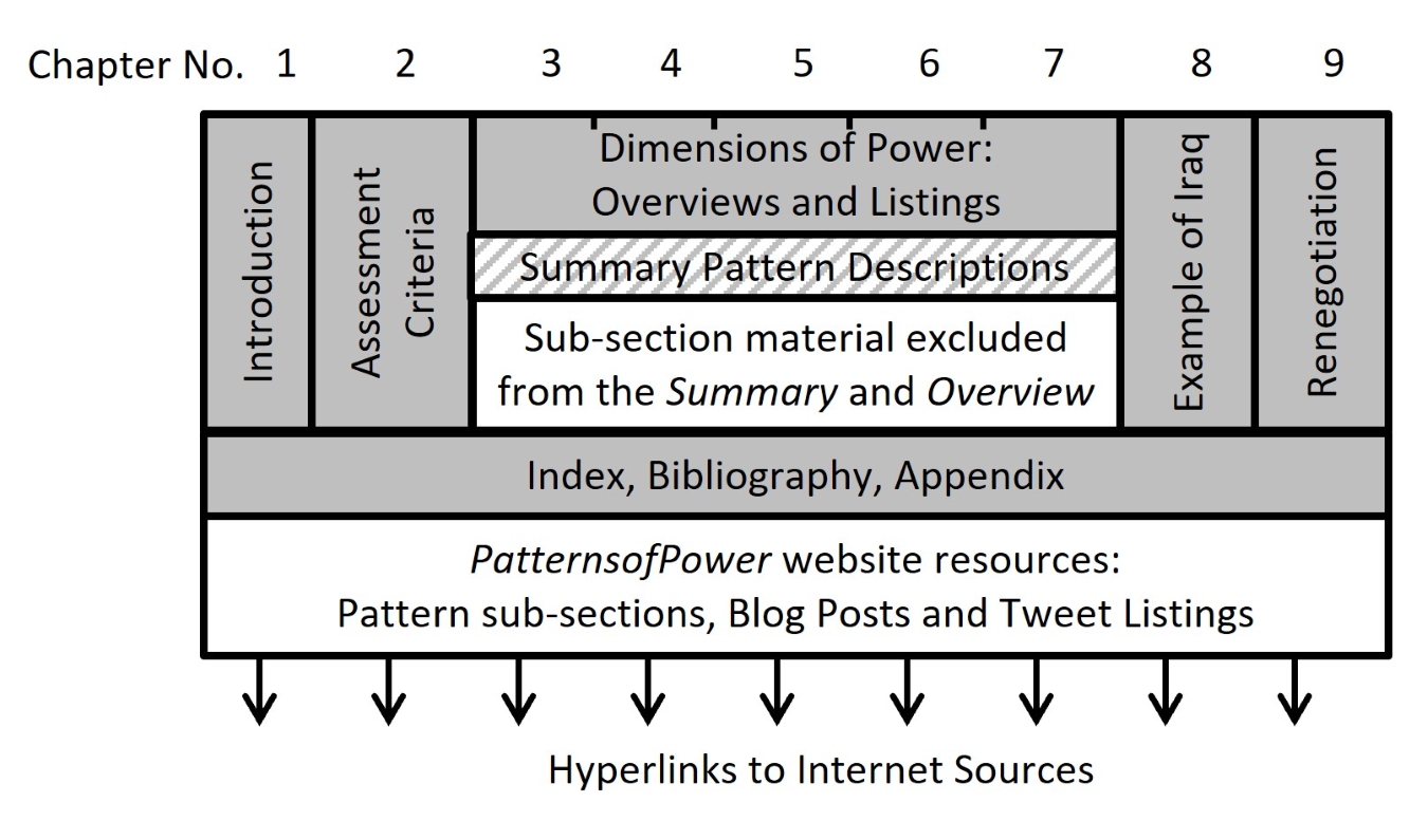 Each of these 5 chapters begins with an overview segment, summarising the nature of that dimension of power, followed by an explanation of the way in which it has been divided into numbered segments. A link is provided to the following chapter at the end of each overview segment – so that readers can choose to gain an overview of the whole book without engaging with any detail; this is recommended for a first reading.